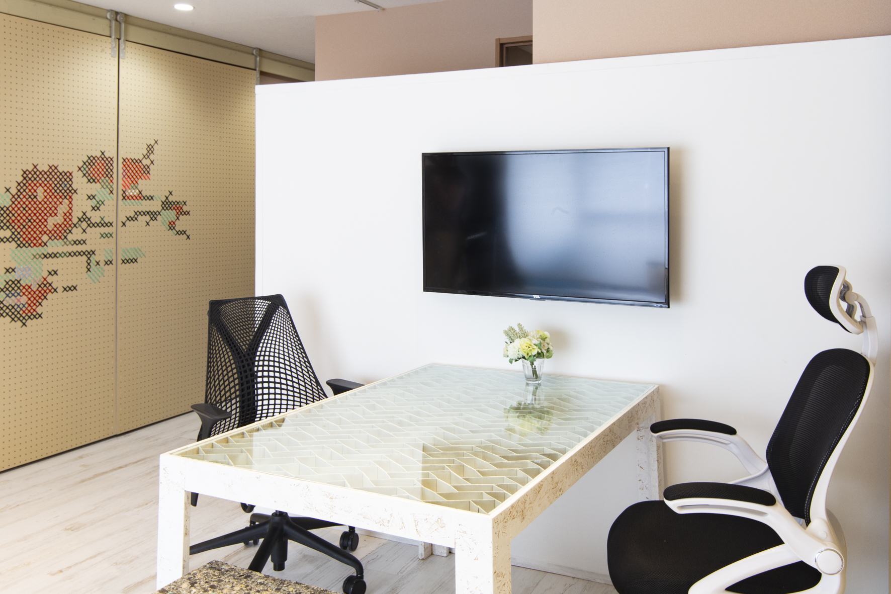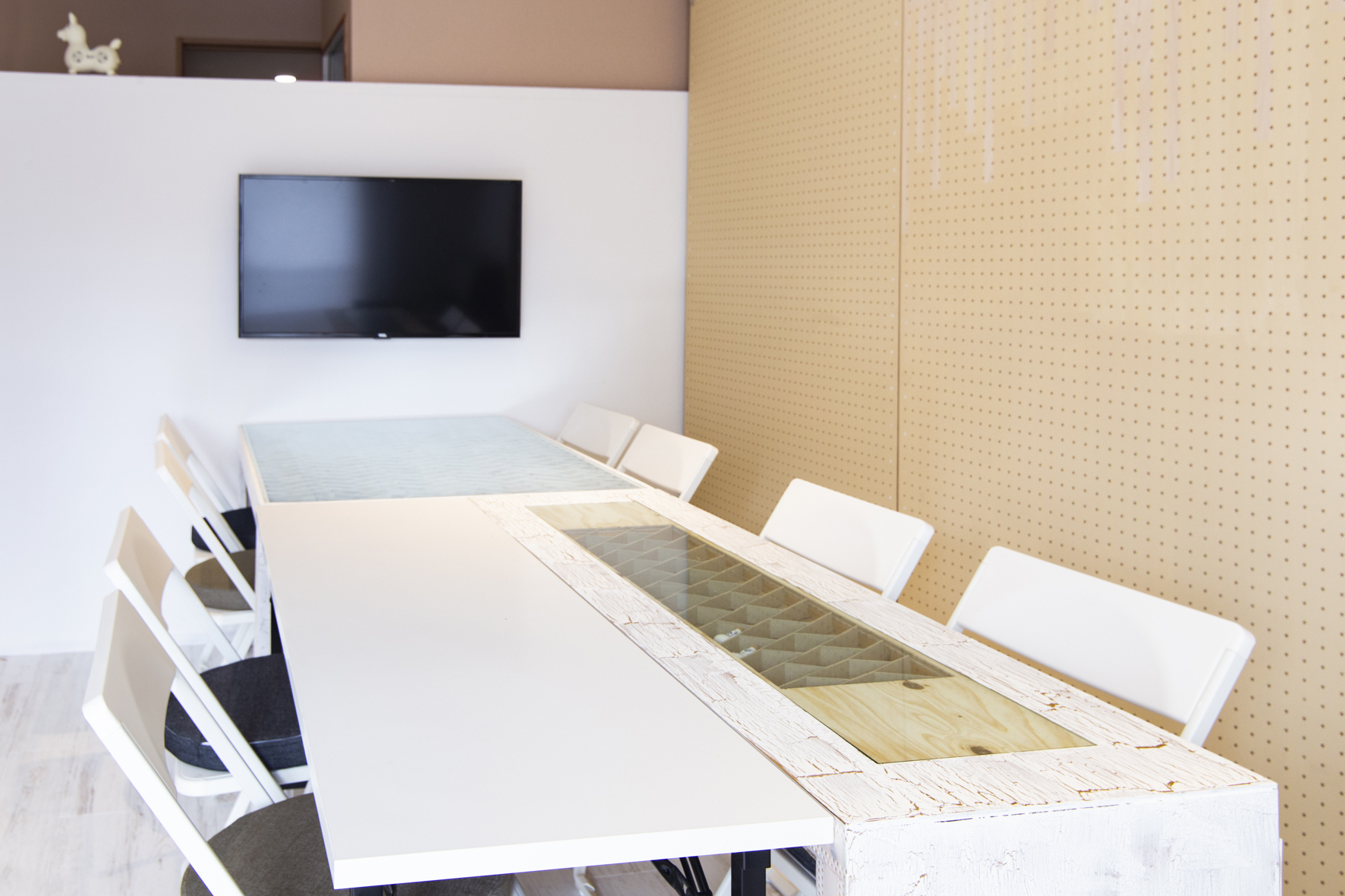 「知的な空間」をコンセプトに、心落ち着きアイディアが膨らむミーティングスペースを作りました。参加者全員でアイディアを創造する空間。作戦会議や趣味のオフ会。商談、面接など。大切なお客様や仲間との貴重なお時間をお過ごしいただけたらと思います。